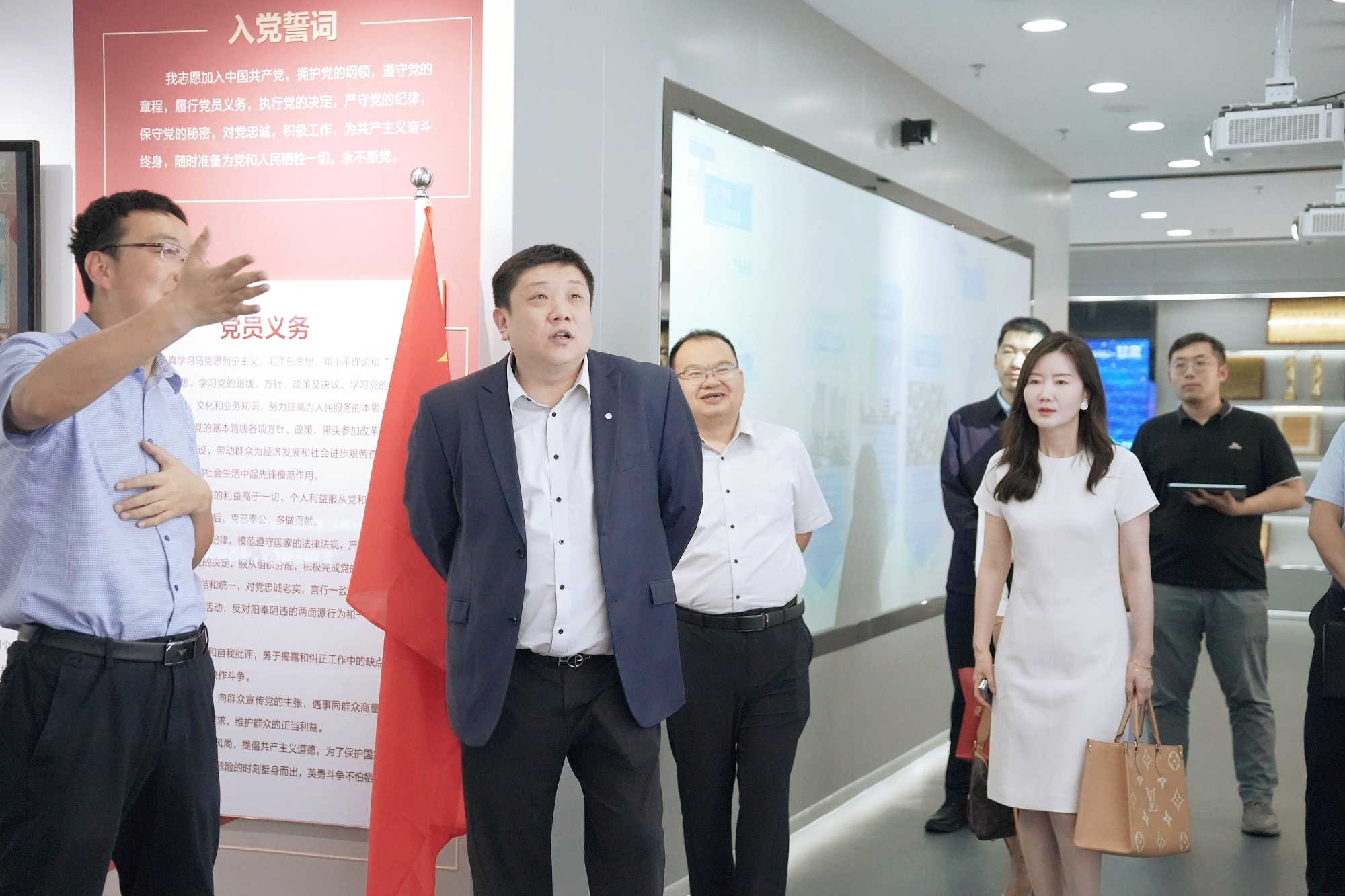 在集团高管的陪同下,招商银行领导一行首先参观了令牌大厦。随后,考察团重点参观了集团企业展厅。在展厅内,各位领导深入了解了令牌集团的发展历程、核心业务布局、企业文化理念以及未来战略规划。通过详实的介绍和展示,招商银行领导对令牌集团的整体实力、经营成果及“同心共创 美好生活”的企业愿景有了全面而深刻的认识。