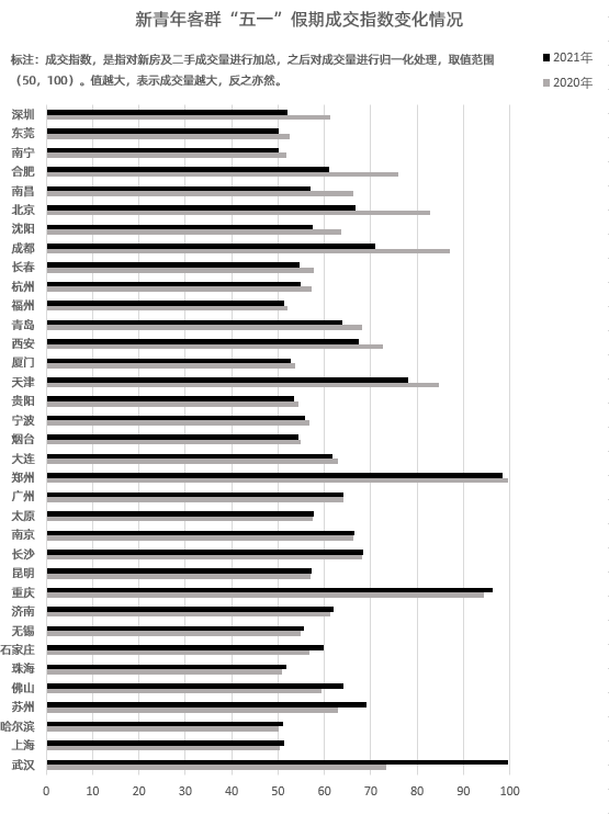 五一期间,新一线及二线城市成交指数上涨