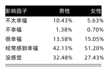 值得注意的是,女性独居新青年更有幸福感。数据显示,更多的女性受访者独居时经常感到幸福(占比约为51.2%),甚至是感到很幸福(占比约为15.05%),而男性受访者没感觉、不幸福的占比相对更高。