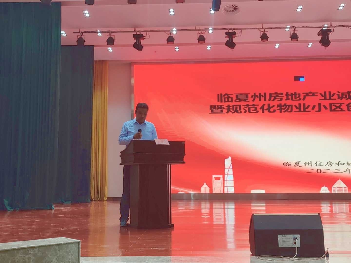 15时,临夏州房地产业诚信建设年活动暨规范化物业小区创建观摩推进会正式召开。会上,令牌集团临夏区域代表杨龙龙围绕房地产品质建设做典型发言。