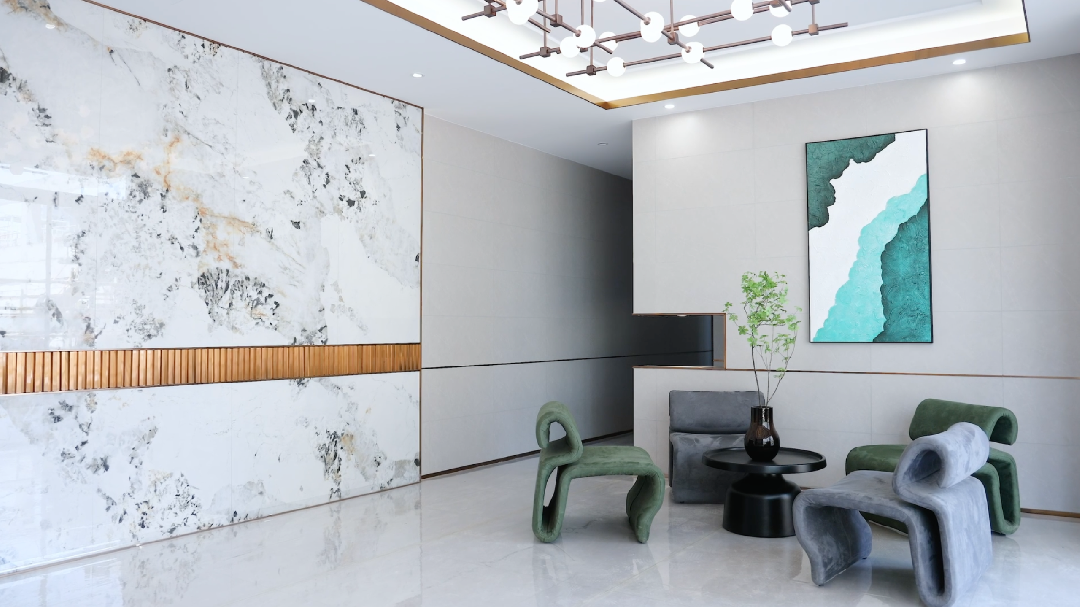生活哲学,是礼的哲学,蕴藏于厅堂之间。令牌·未来时光单元入户大堂以香槟金色铝板、超白玻纯净且层次丰富,为业主带来流畅和谐的归家体验,缔造尊崇的归家仪式感。