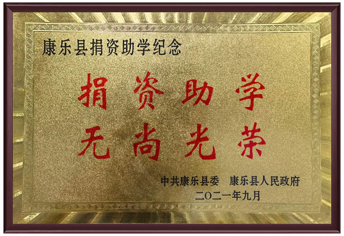 2021年9月,康乐县教育工作暨庆祝第37个教师节表彰大会在康乐县城北学校隆重召开,康乐县委书记杨志军,县委副书记、代理县长马文吉,县人大常委会主任马雪青,各乡镇党委书记、乡镇长,县直及省州在康各单位主要负责人等领导出席会议,康乐县教育系统干部职工及教师代表、受资助的贫困优秀大学生、贫困普通大学生代表等千余人参加会议,会议由县委副书记、代理县长马文吉主持。会上,康乐令牌房地产开发有限公司总经理潘海红代表令牌集团捐资130万元助力康乐教育事业,被中共康乐县委、康乐县人民政府授予“捐资助学 无尚光荣”荣誉称号。